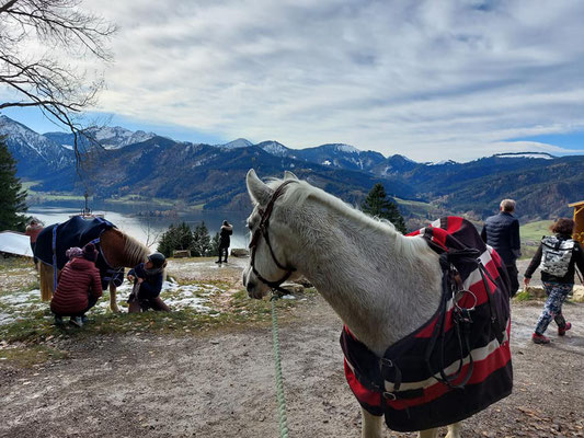 Einige Höhenmeter durch den Rhonberg auf die andere Seite geritten mit Blick auf den Schliersee.